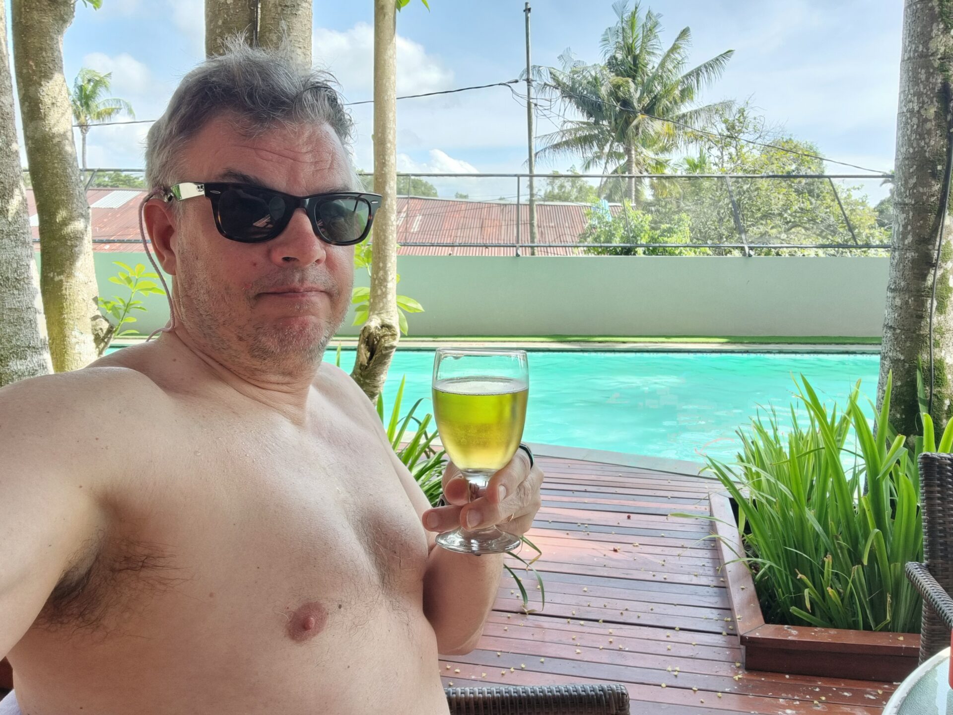 Laukku painoi punnitessa tasan 25.0 kg ja se oli nyt laputettu Jakartaan asti. Sitten turvatarkastuksen läpi, jossa ei juurikaan ollut nyt jonoa. Reppu meni lisätarkistukseen, kun siellä olleet akut haluttiin nähdä. Niitä vain vilkaistiin ja asia oli sillä selvä. Sitten jatkoin suoraan non-Schengen alueelle jossa jo näkyi muita meidän matkalaisia. Mentiin suoraan lähtöportille, jonka vieressä oli kahvila ja otin sieltä tuopin olutta muiden seurassa kun lähtöä odoteltiin.