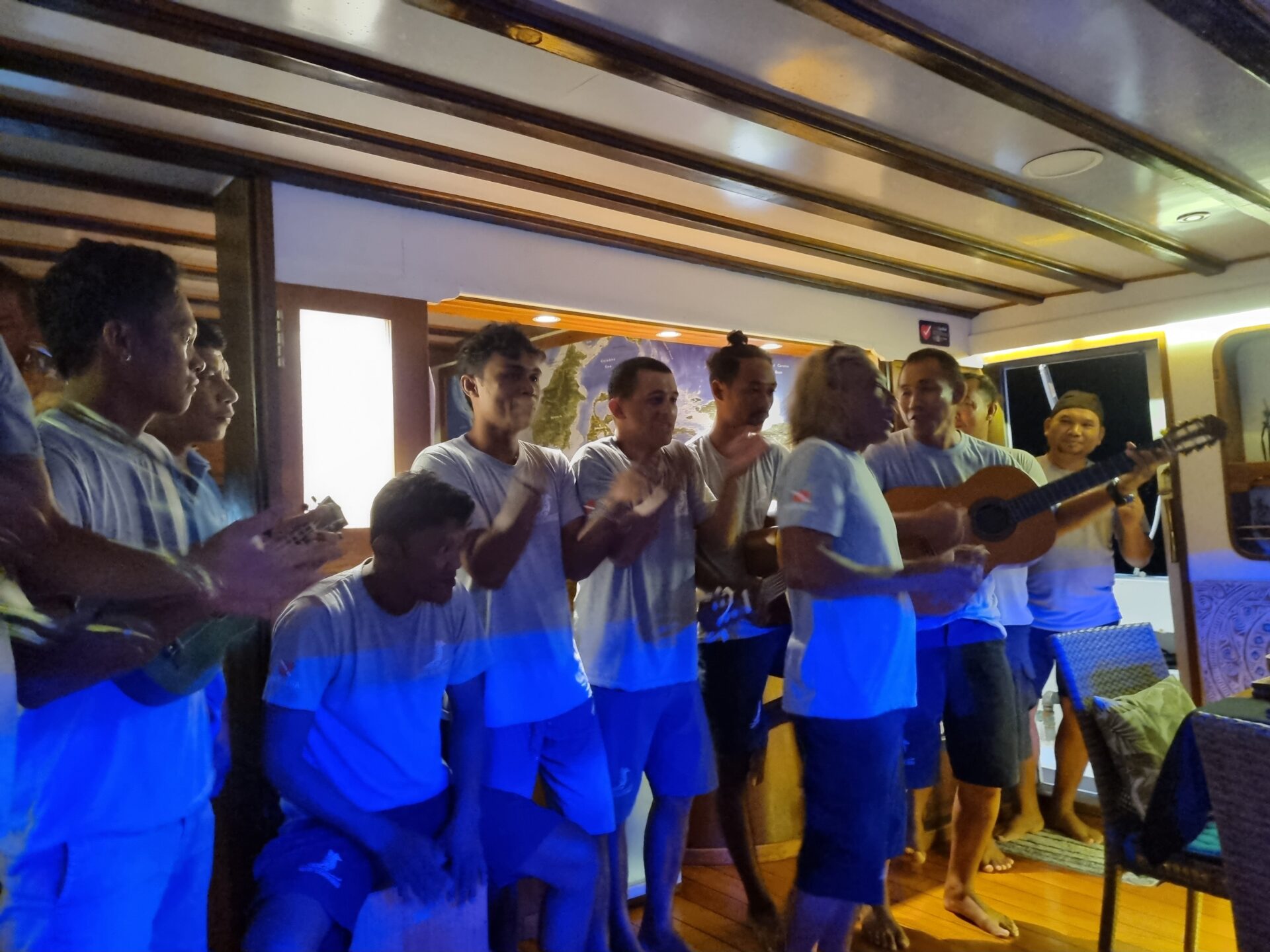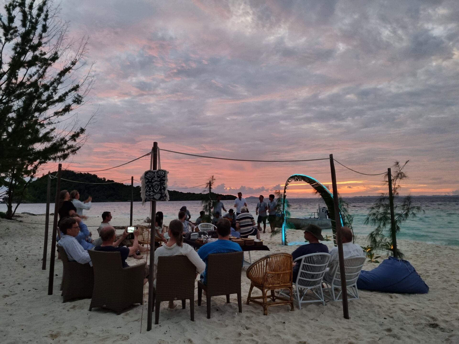Nyt ei enää voitu tehdä yösukellusta koska meillä oli erikoisillallinen läheisen saaren rannalla.