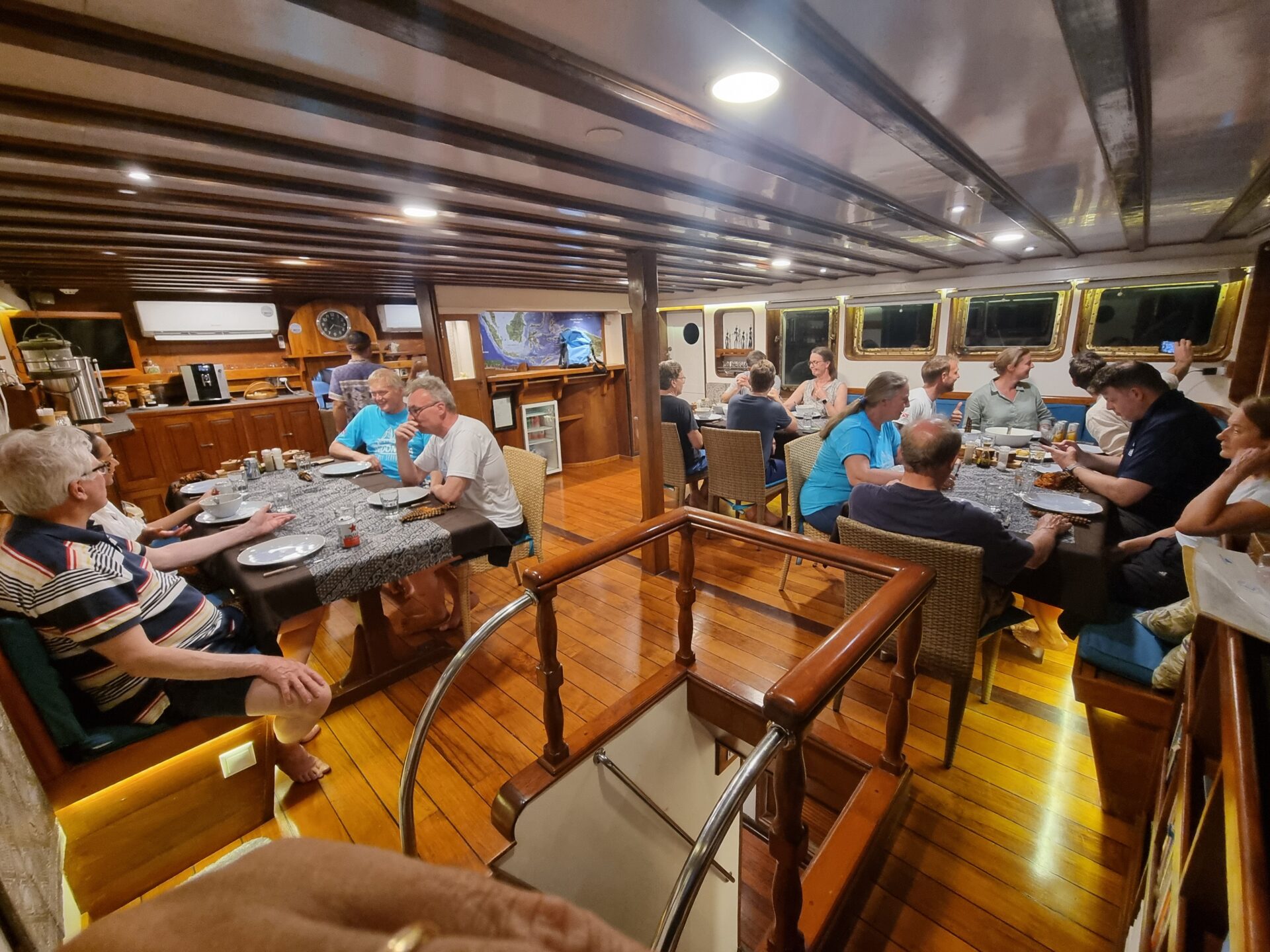 • 13:30  Seahorse lähtee ajamaan kohti Sorongia. Kaikki omat sukelluskamat kasaan huuhtelua ja kuivatusta varten.