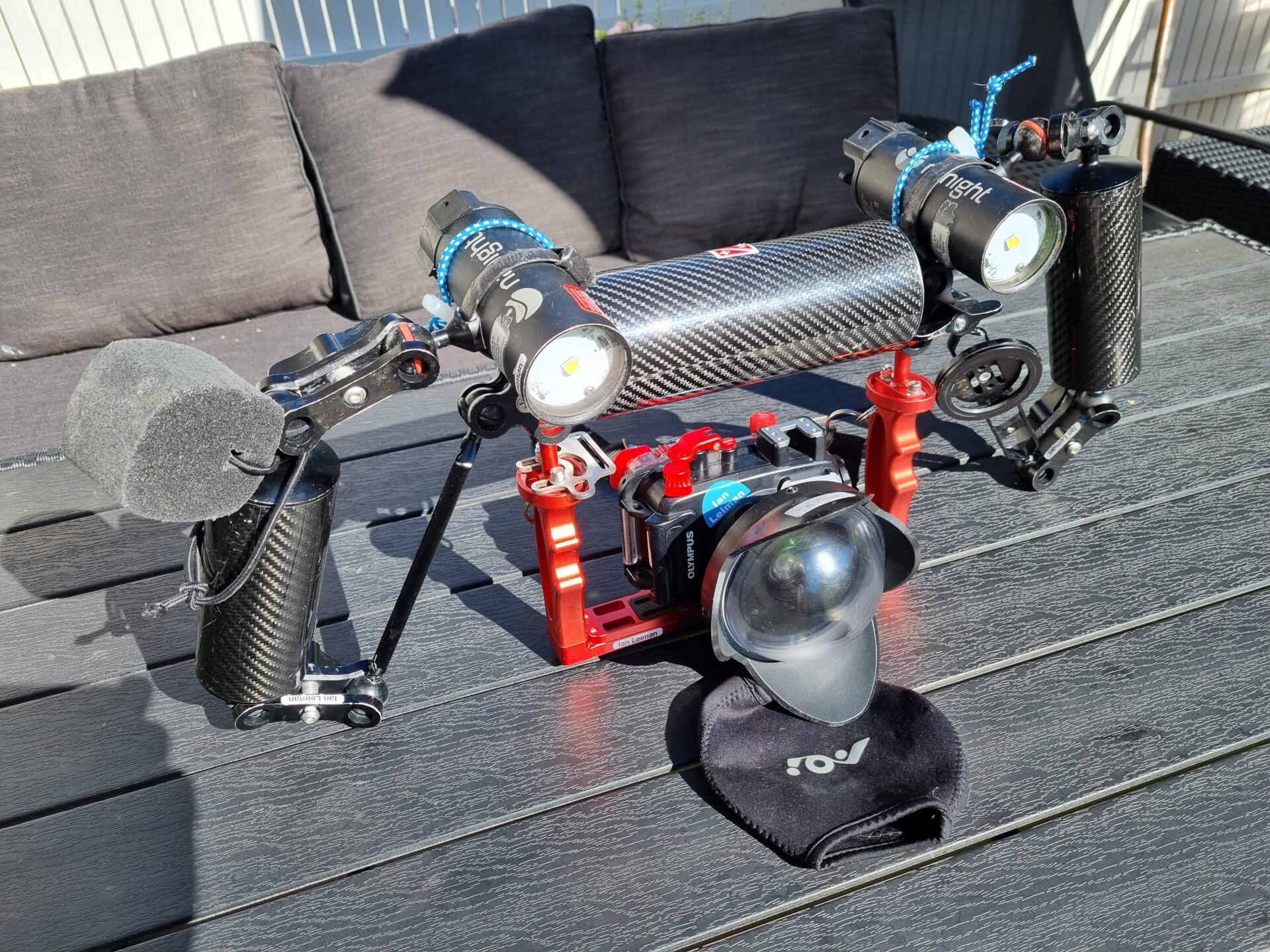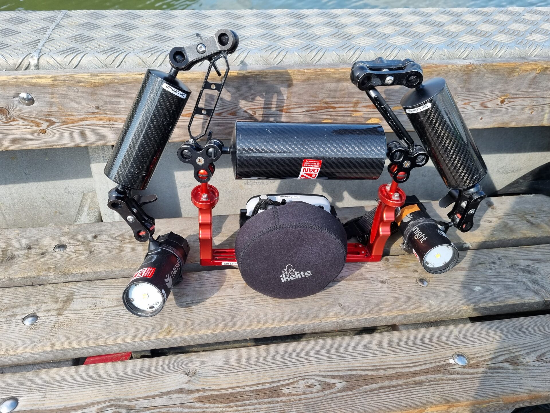 Ikelite DS161 salama on melkoinen möhkäle ja sen kanssa ei ole kovin kätevää sukeltaa. Helpompi ratkaisu on käyttää kahta videovaloa. Seuraavassa kuvassa setti jossa on TG-6 Ikeliten kotelossa, 2x NaNight videovalot.